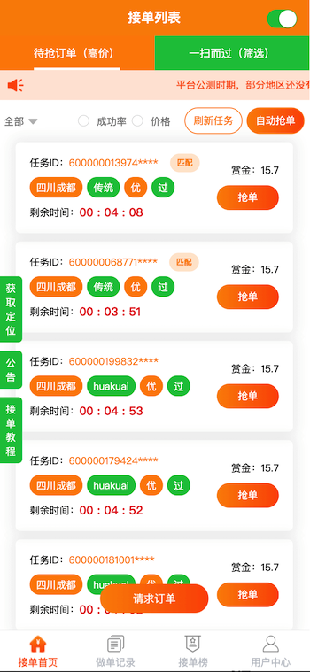類似“碼幫平臺/FZ輔助/碼力平臺/閃電接單/蜻蜓輔助/雛菊輔助”,第三方微信輔助注冊任務管理平臺——“蜜蜂”任務平臺管理系統(tǒng),幫助有大量微信注冊需求的商家和想要0元投入月入過萬的兼職人員搭建連通的橋梁。系統(tǒng)由用戶端H5/APP、商家端H5/APP、地推商戶端H5、商家端PC、平臺端PC架構而成,支持用戶隨時提現(xiàn),支付寶實時到賬,商家端一鍵掃碼下單,方便快捷;系統(tǒng)支撐商家每天10萬+的訂單下發(fā)和用戶隨時隨地搶單,做單,賺取傭金,提現(xiàn)等更多功能。。。
